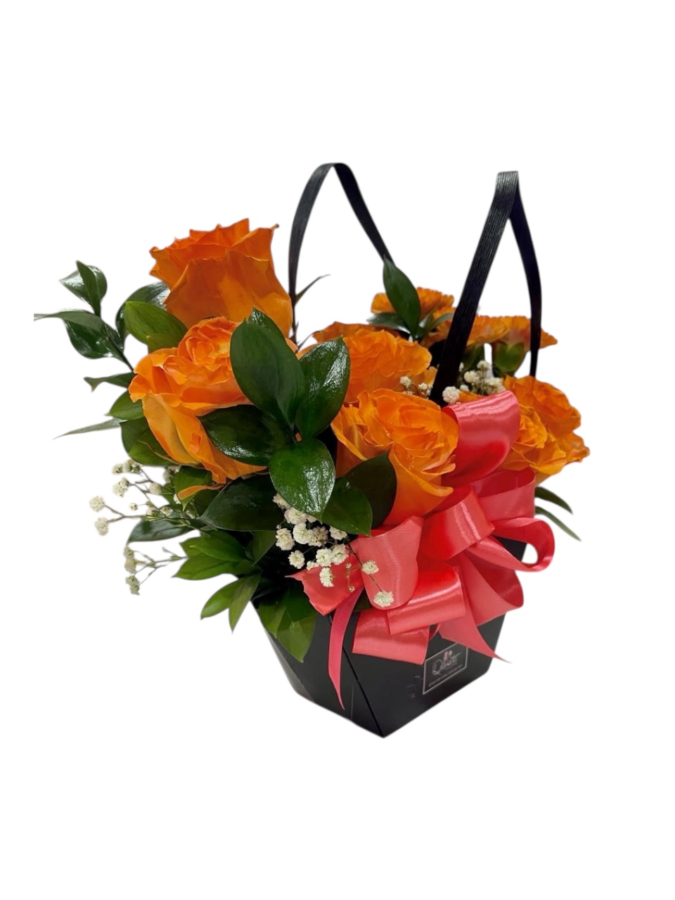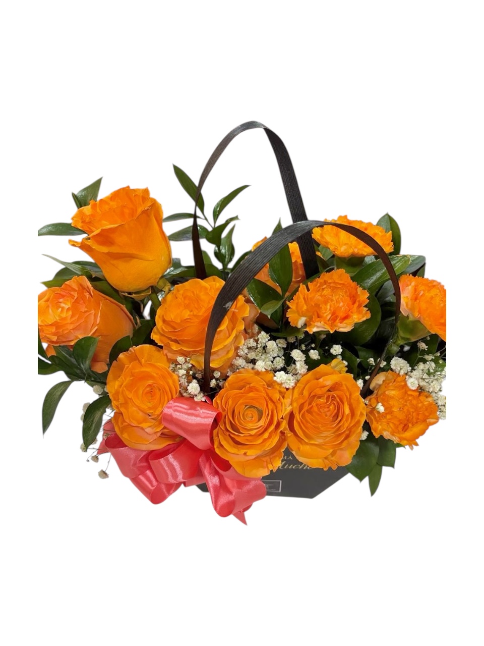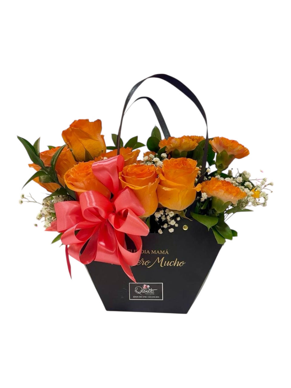 Arreglo en tonos naranja intenso con un toque elegante y vibrante. Perfecto para sorprender con amor, color y mucha gratitud.