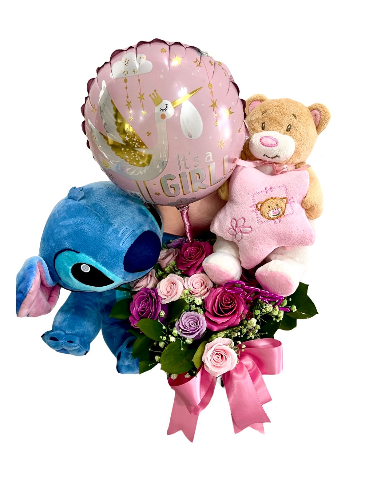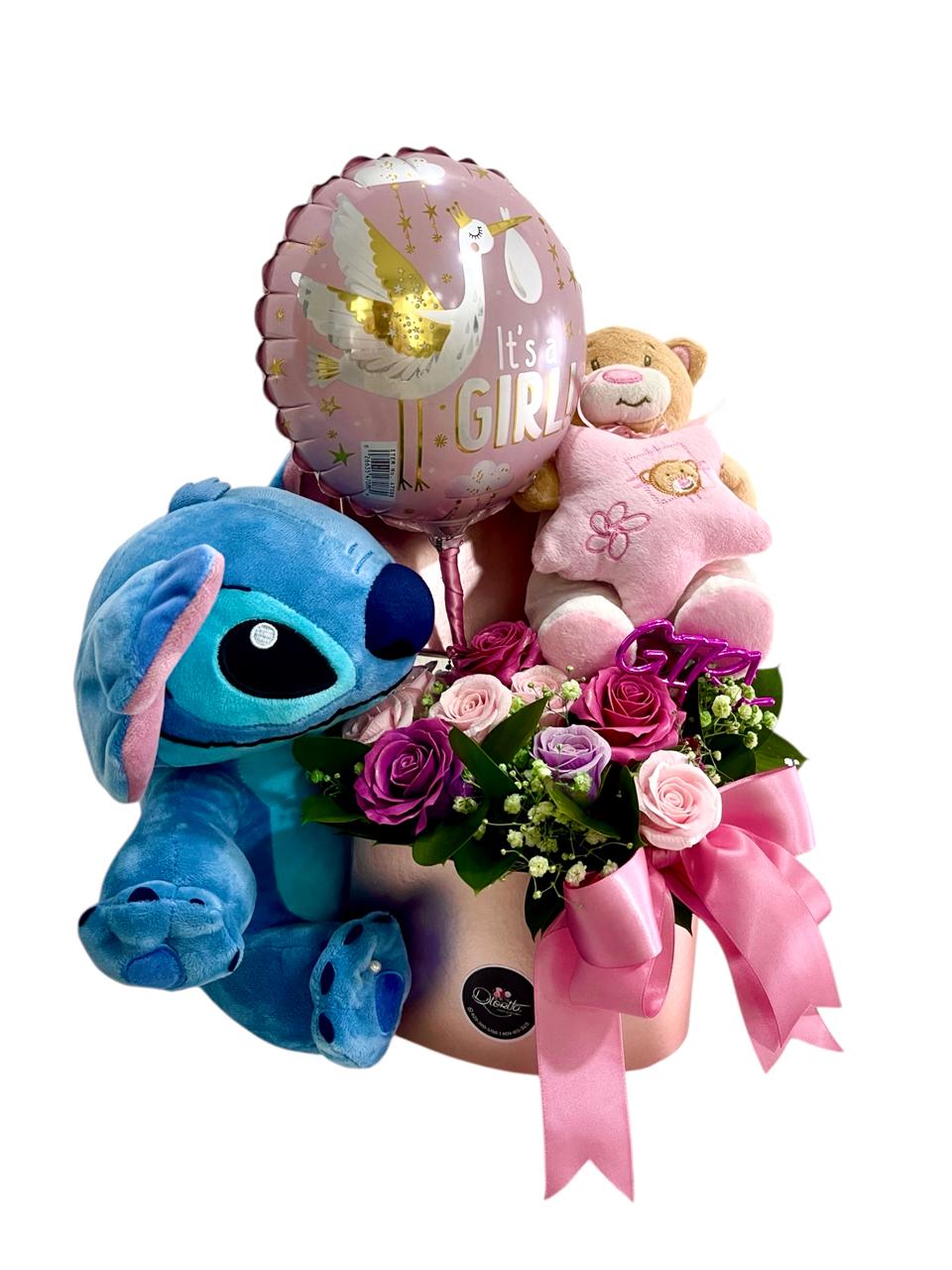 ¡La ternura llegó en forma de regalo! Incluye: caja especial, rosas de jabón y globo para anunciar la llegada de la bebé.
