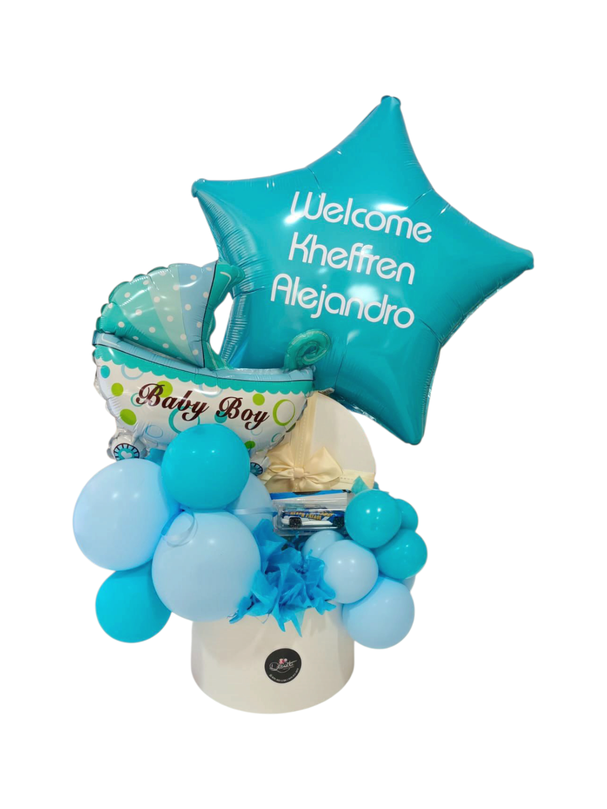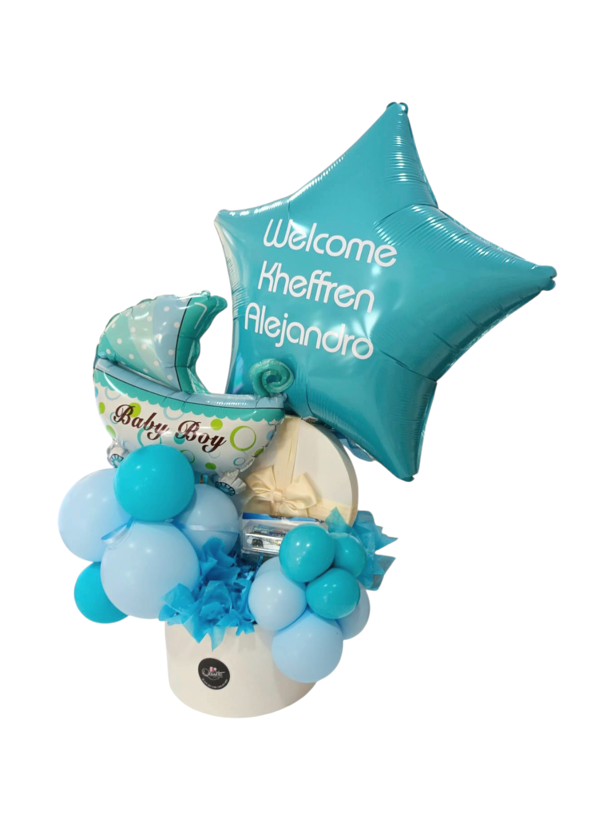Celebra la llegada de un hermoso bebé con este encantador arreglo de globos en tonos celeste y azul, con detalles de cochecito y un gran globo estrella. Perfecto para decorar la habitación, la maternidad o sorprender a los nuevos papás. ¡Llena de alegría y color ese momento tan especial!