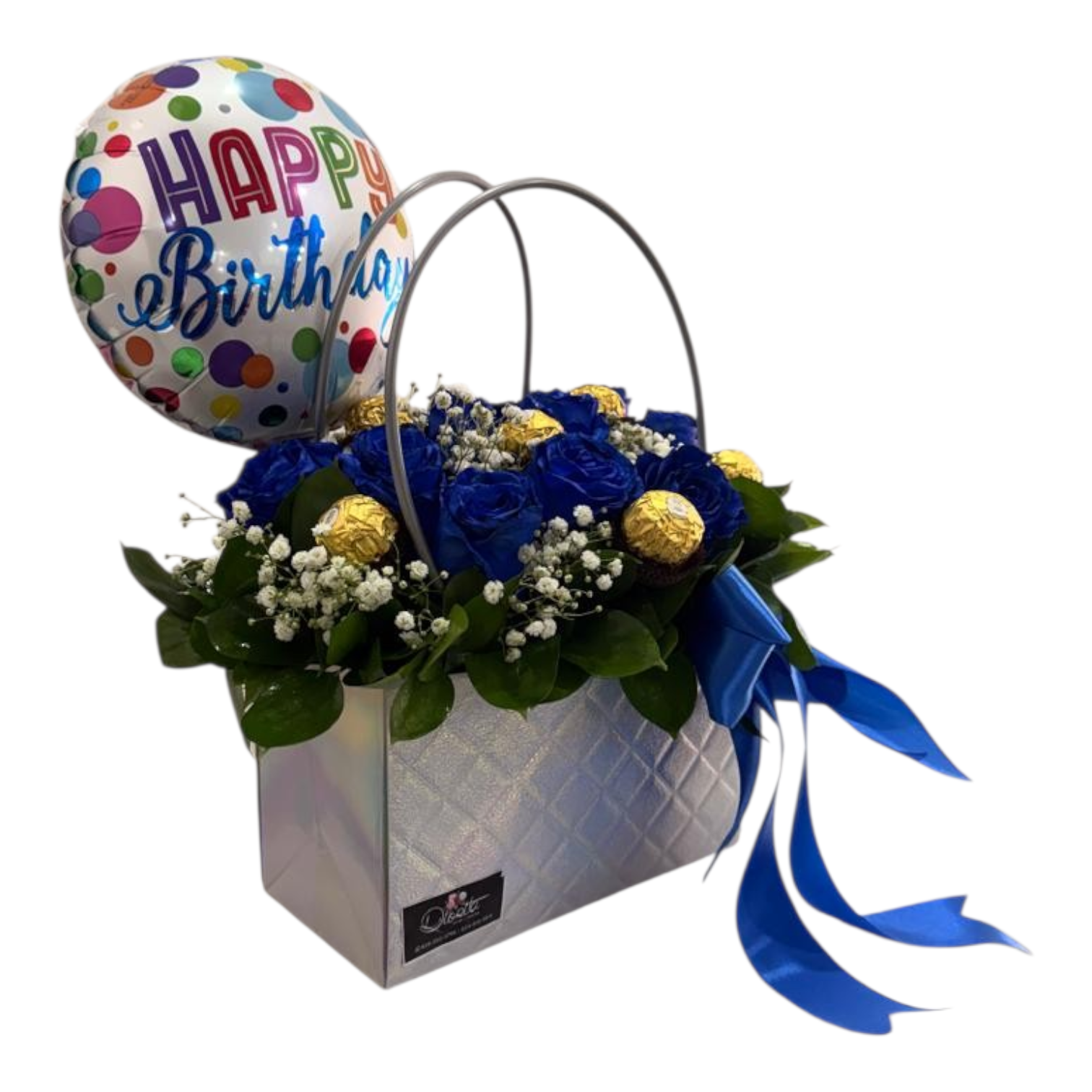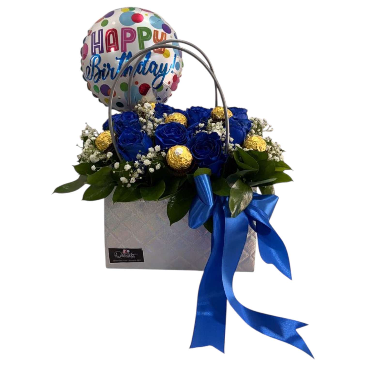 “La combinación perfecta entre flores y chocolate. 10 rosas cuidadosamente diseñadas en caja tipo cartera, con detalles naturales que realzan su belleza, Incluye 6 Ferrero Rocher y globo de cumpleaños para un detalle aún más especial. Ideal para consentir y enamorar.