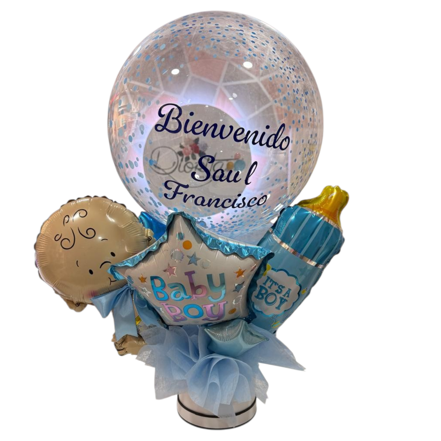La forma más dulce de anunciar su llegada: globos temáticos “It’s a boy” en armonía con una caja redonda que resalta cada detalle.