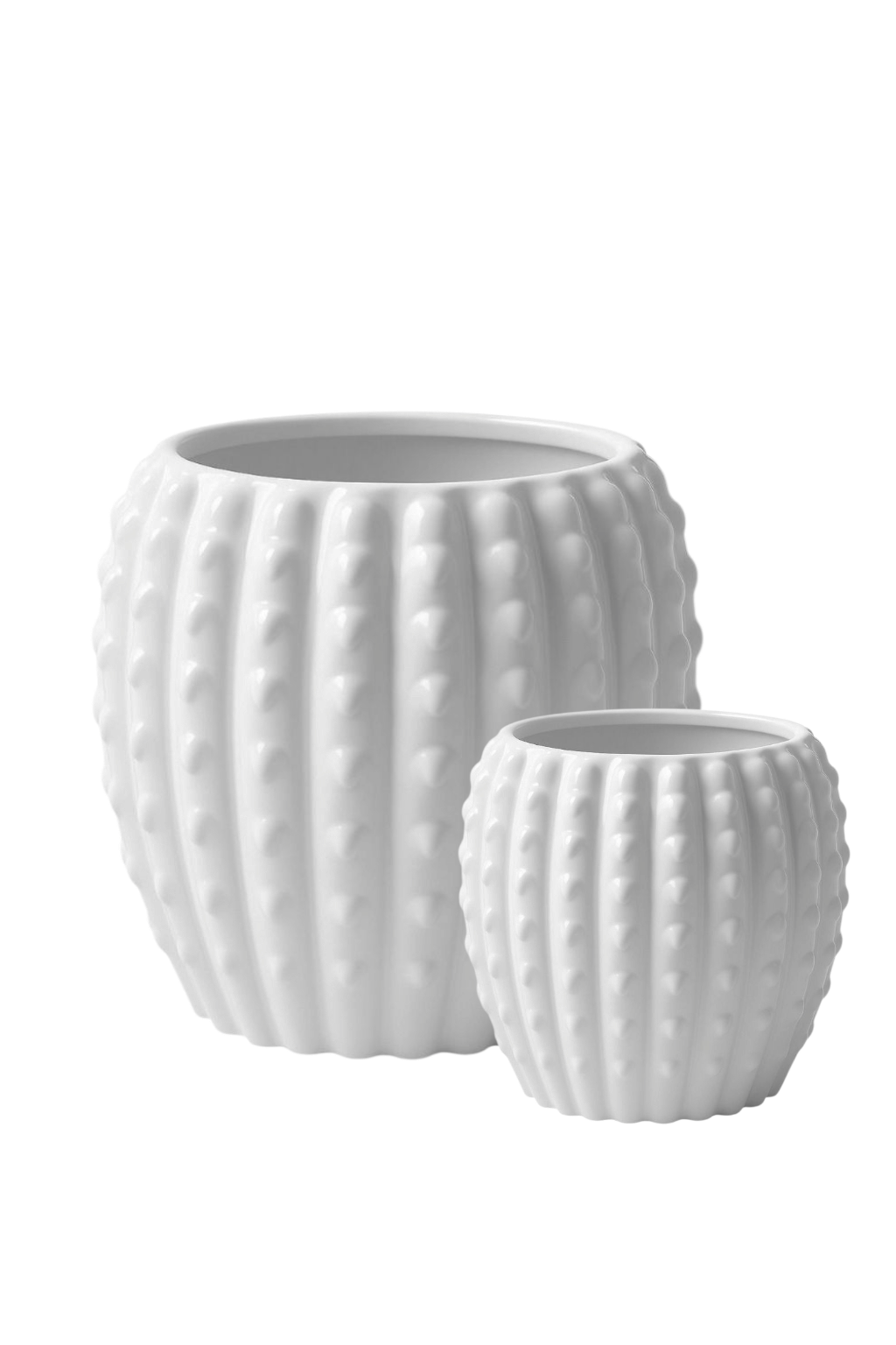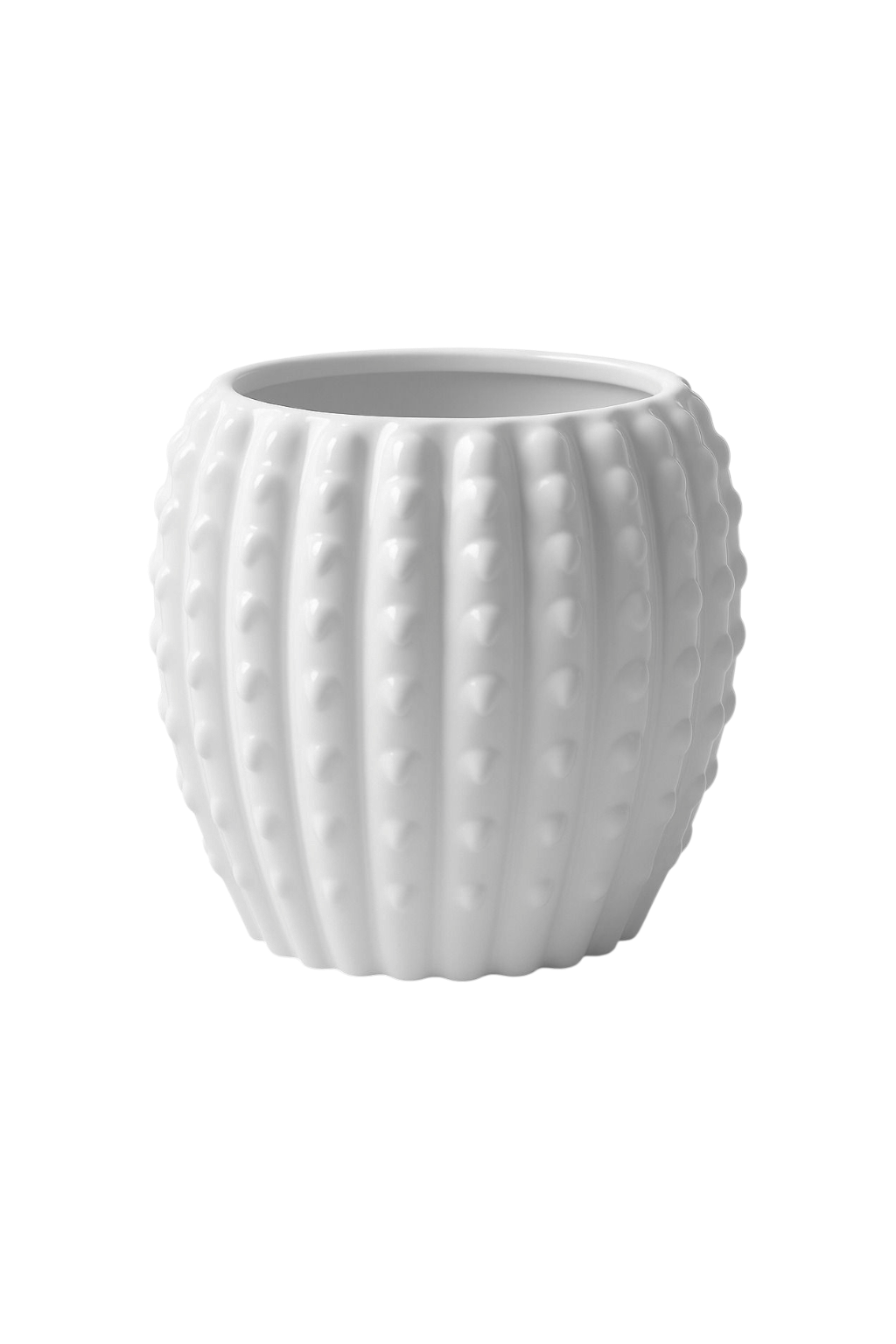 Base Macetero Redondo en Cerámica Blanca con Hojas