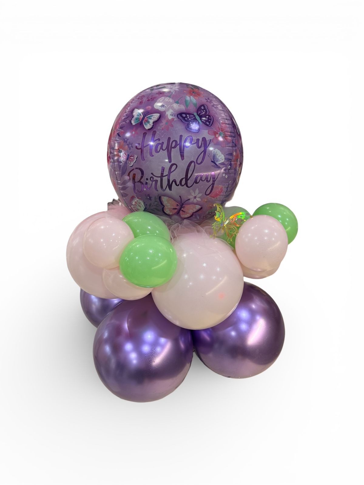 Un detalle que eleva cualquier espacio. Arreglo compacto con globos látex y Orbz cromado, ideal para mesa o repisa.