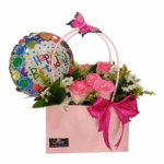 Un arreglo vibrante que combina globos metálicos en forma de estrella, disco y destello, globos de látex, personalización especial y todo inflado con helio. Incluye pesita decorativa para un acabado perfecto. ¡Ideal para sorprender y celebrar en grande!