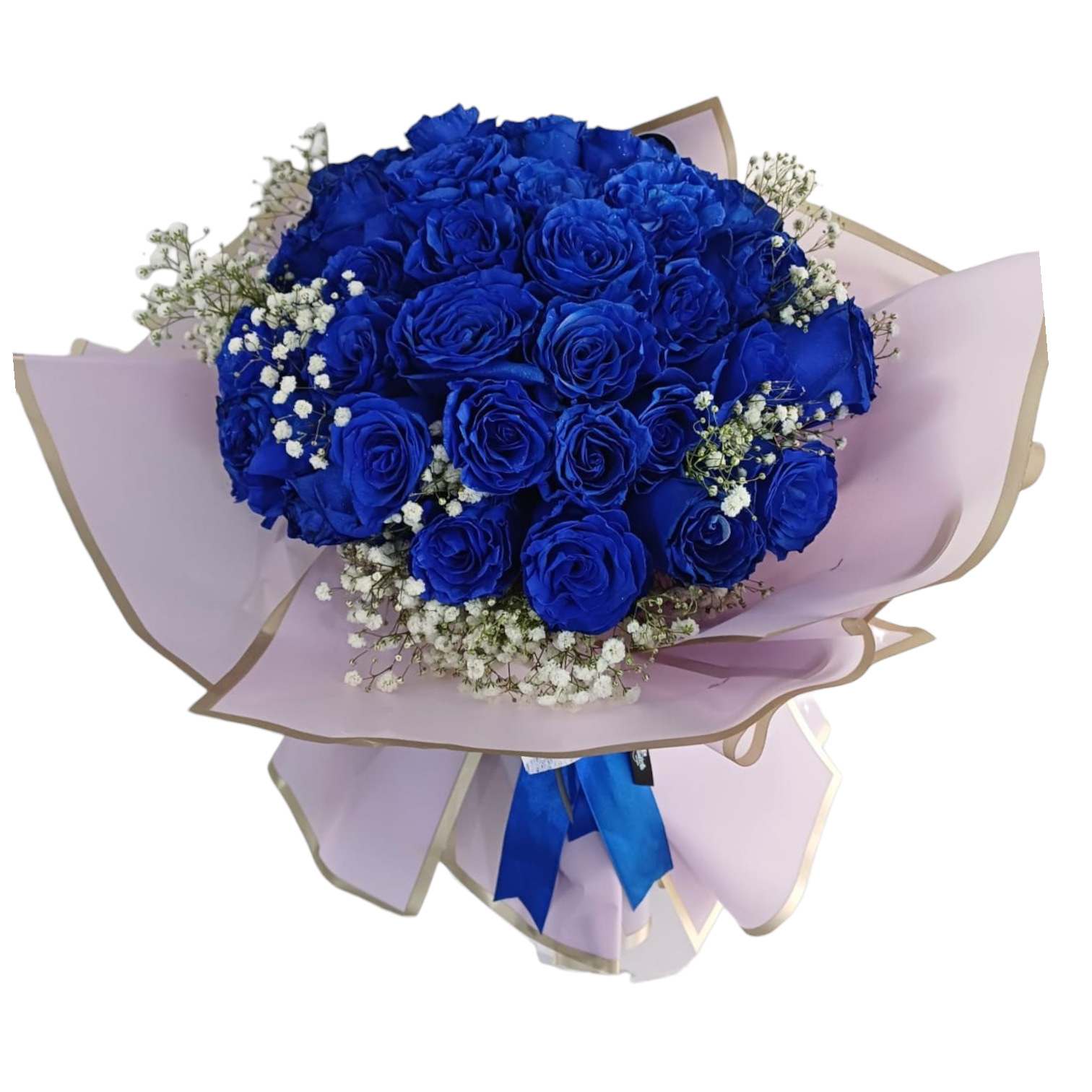 Déjate conquistar por la elegancia inigualable de nuestro bouquet premium de 50 rosas azules. Cada tallo está dispuesto con armonía dentro de una envoltura sofisticada que resalta la intensidad del color y la perfección del conjunto. Ideal para aniversarios, ocasiones especiales o para decir ‘eres única’ con estilo y distinción.