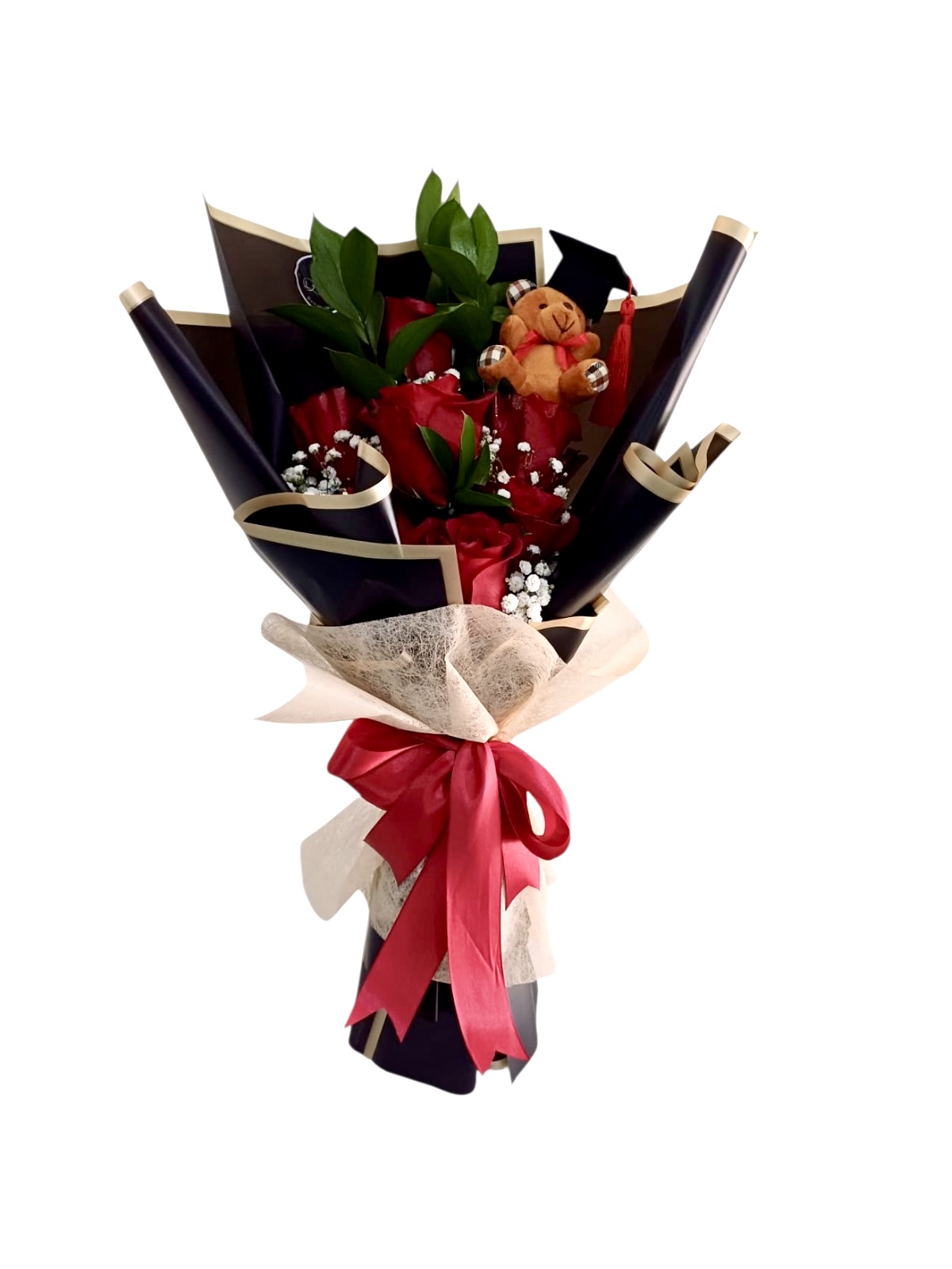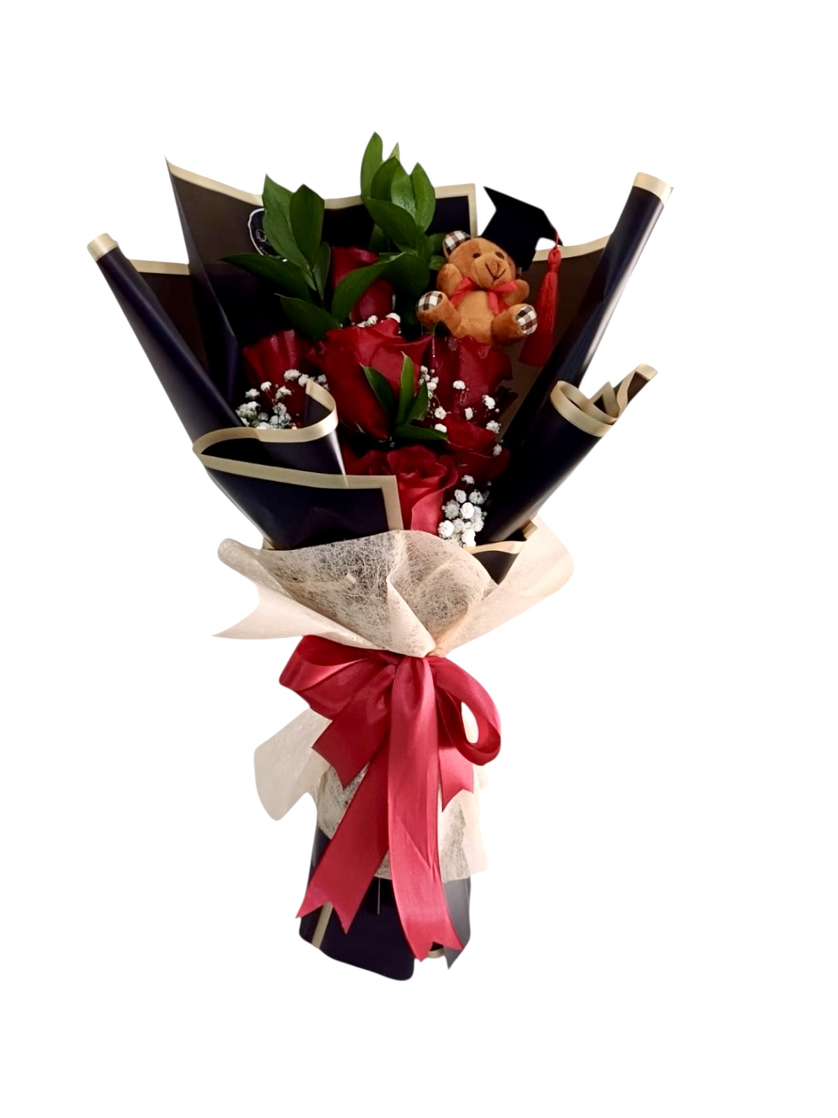Etiquetas: Bouquet Color negro Graduación Rosas rojas Rosas y baby Breath