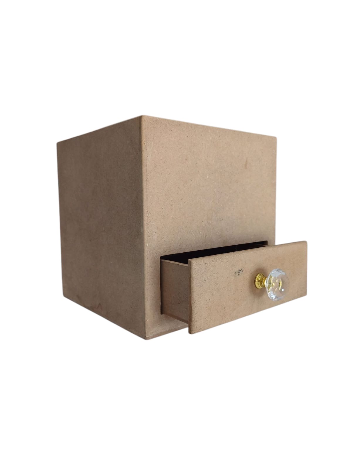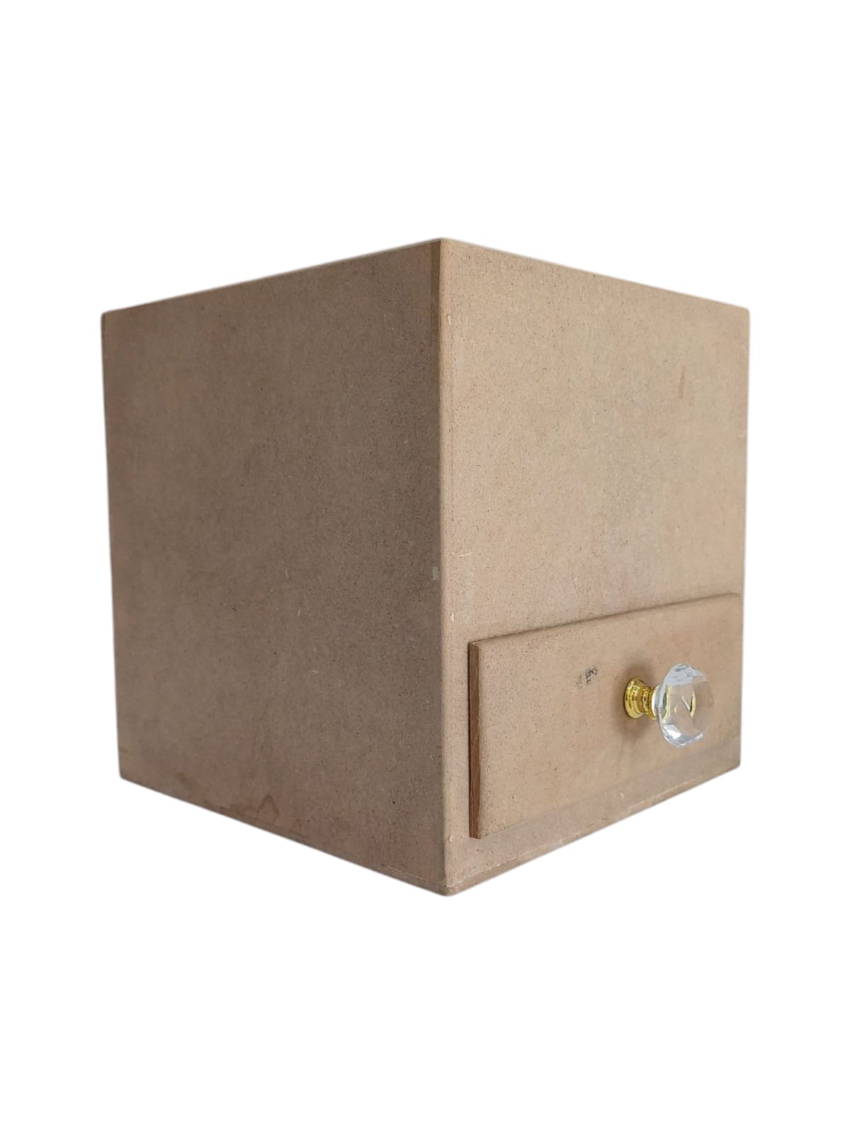Caja cuadrada en MDF Kraft con gaveta 8x8x8 pulgadas