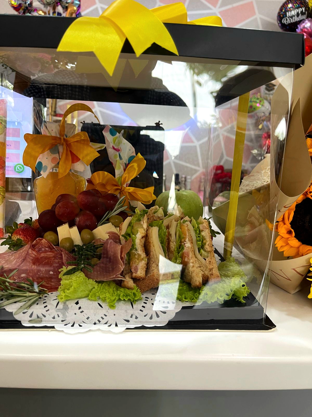 Un mix delicioso: frutas frescas, charcutería, yogurt, jugo natural y club sandwiches irresistibles. ¡Perfecto para compartir!