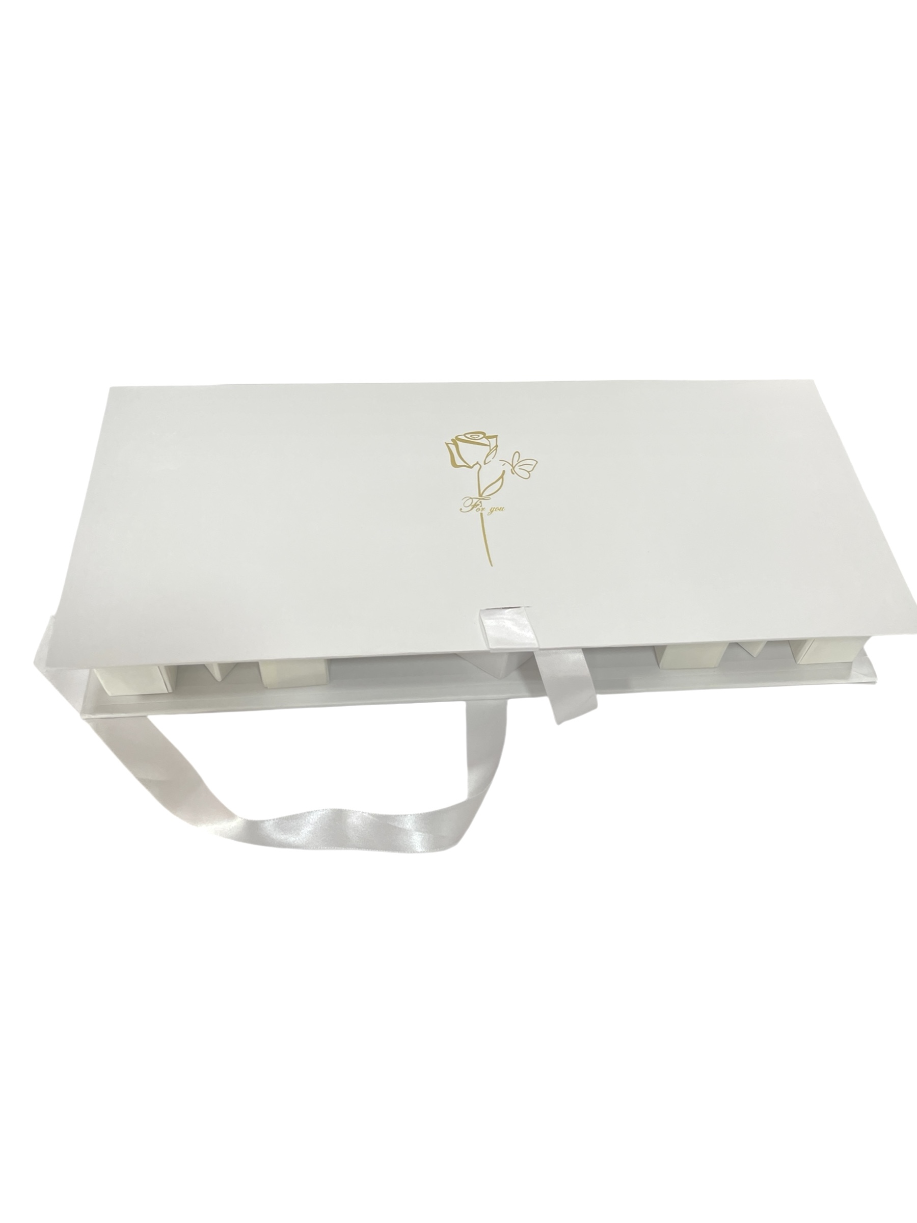 Caja forma cartera en piel blanca y negra con mangas D79-N