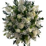 Corona Fúnebre de Rosas blancas, Lirios y Ruscus 5640