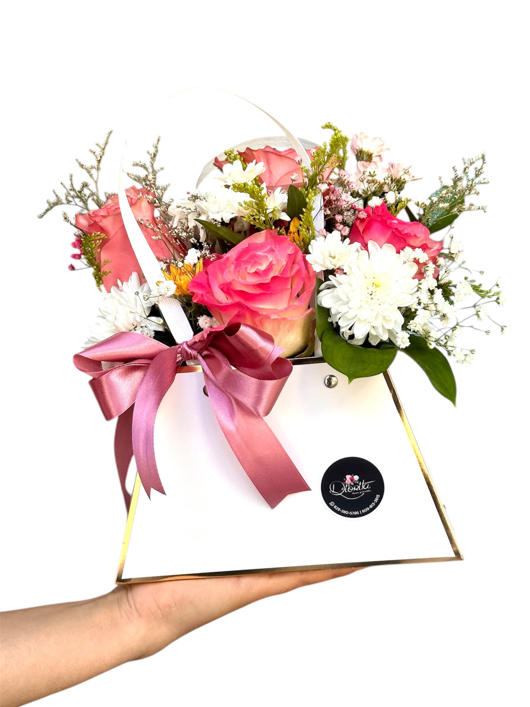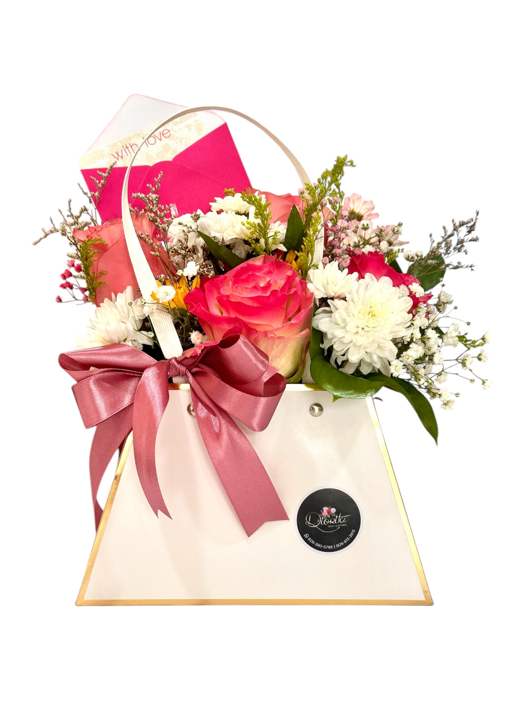 Categorías: < RD$3000, Arreglos para celebraciones, ARREGLOS Y RAMOS FLORALES, B - Arreglos en Cajas, C - Arreglos en caja forma cartera
