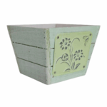 Florero de madera Grande de colores con placa de aluminio 15x15x11 cm