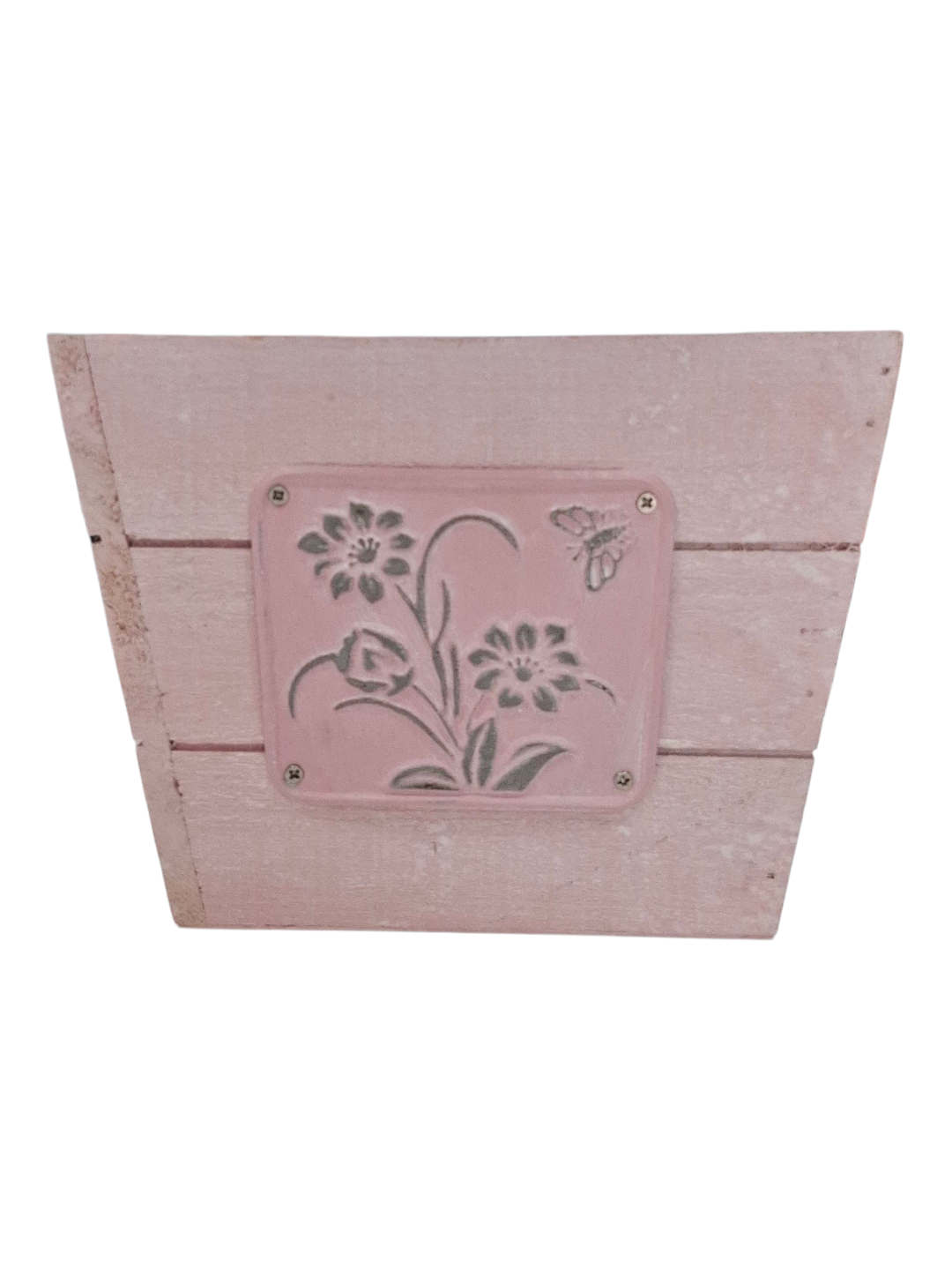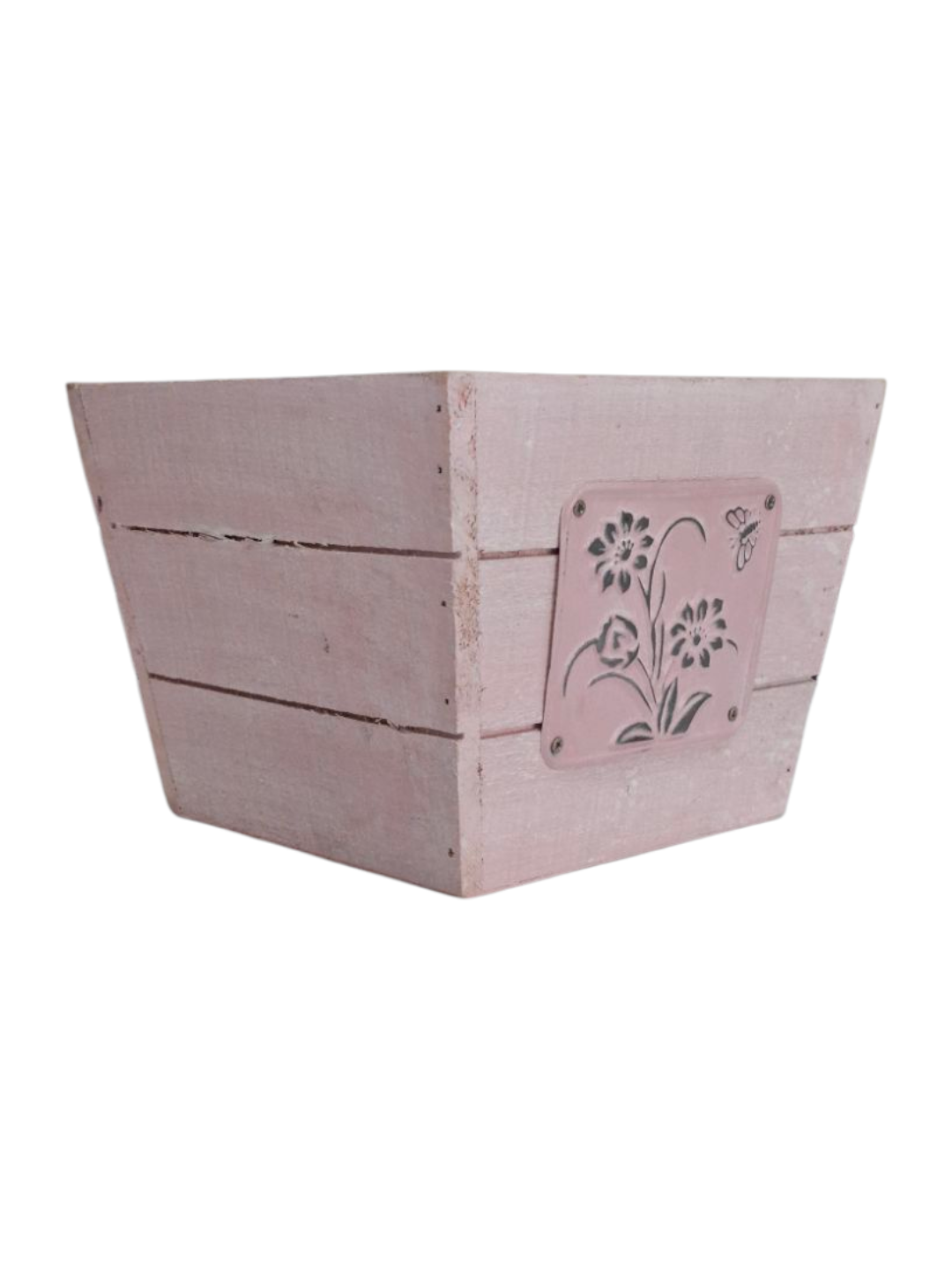 Florero de madera Grande de colores con placa de aluminio 15x15x11 cm