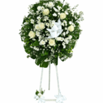 Rosas azules y flores blancas en un delicado ramo de mano, atado con cinta blanca. Perfecto para novias, bautizos o momentos llenos de pureza y elegancia.