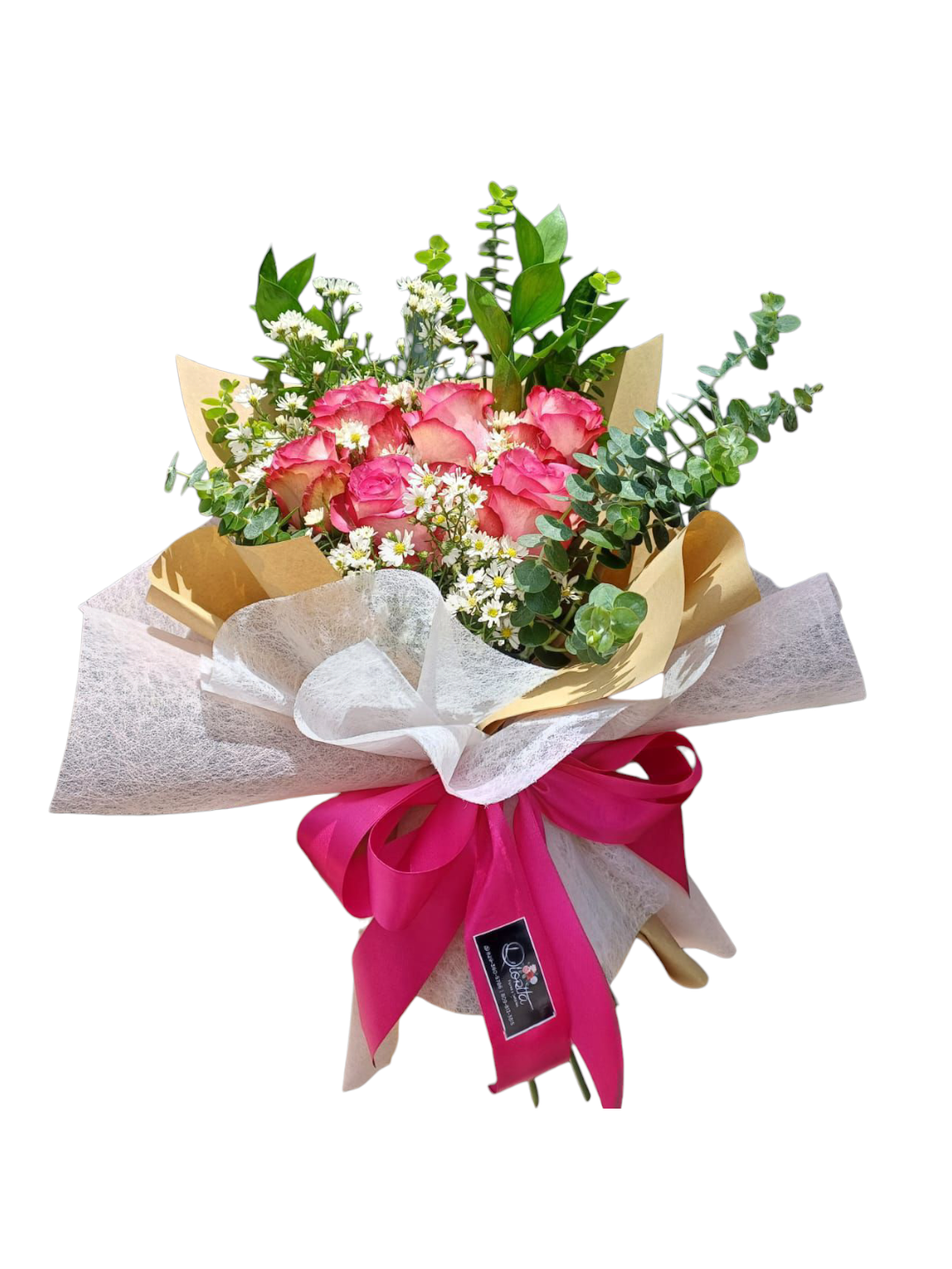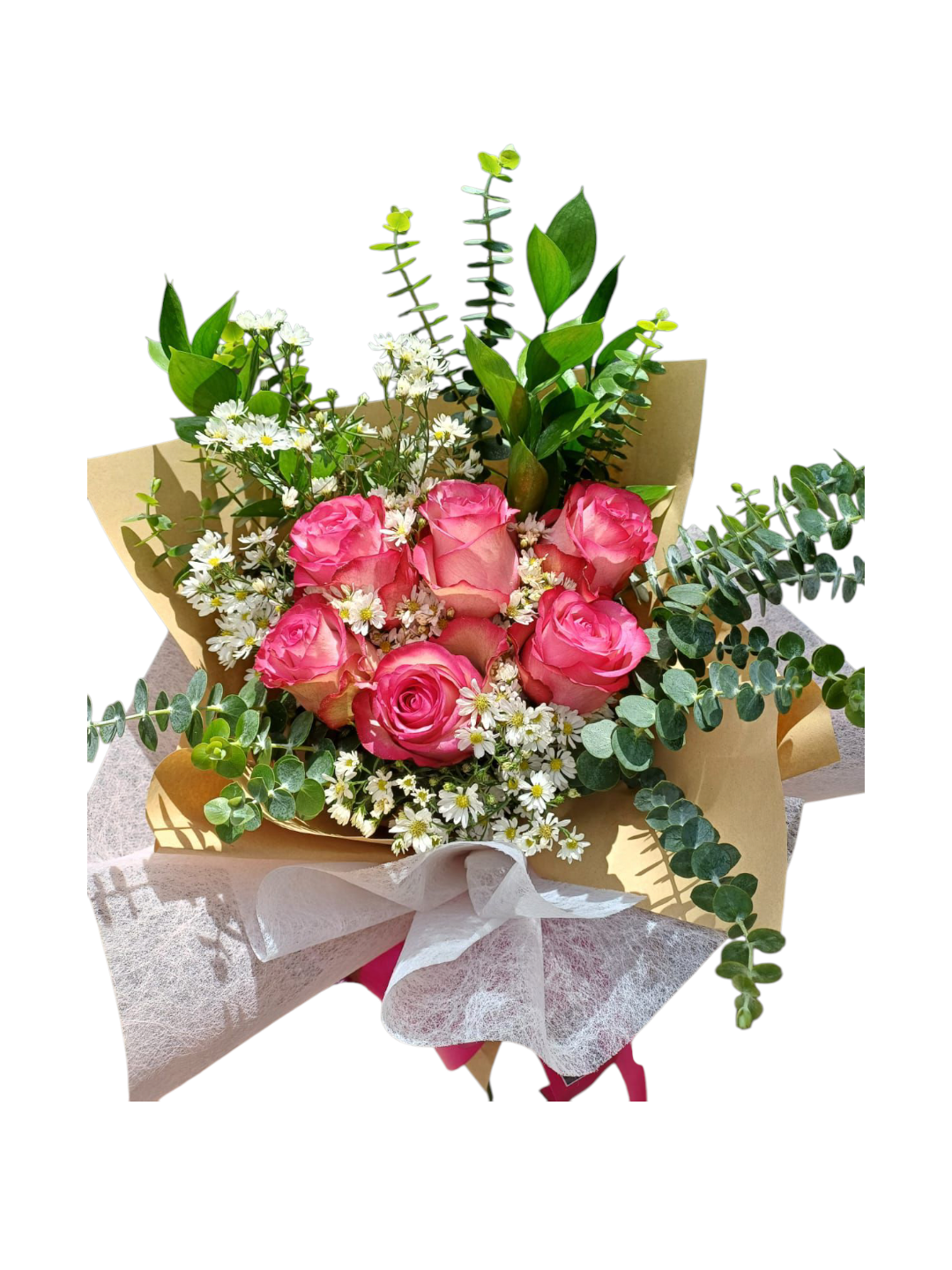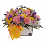 Un arreglo tierno y encantador que combina la belleza de las rosas con la frescura del follaje y la delicadeza del baby breath. Un detalle pensado para regalar sonrisas y emociones sinceras.